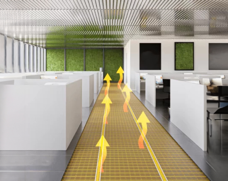 Las láminas calefactoras son finas capas de lámina recubiertas de un material conductor que, cuando se conectan a una fuente de alimentación, emiten radiación infrarroja. Esta radiación calienta no sólo la superficie del suelo, sino también los objetos de la habitación, de modo que el calor se propaga uniformemente. Gracias a este sistema de calefacción, el aire de la habitación es más cálido y agradable, y los usuarios experimentan un confort térmico sin tener que calentar el propio aire.